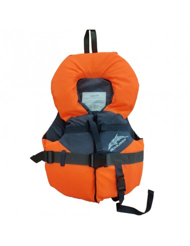 de alta visibilidad en la cabeza, tela interior hipoalergénica, ceñimiento elasticado en parte trasera de espalda cierre Eclair Central para seguridad adicional  de ajuste y alta flotación con poder de enderezar rápidamente su niño después de una caída accidental en el agua.